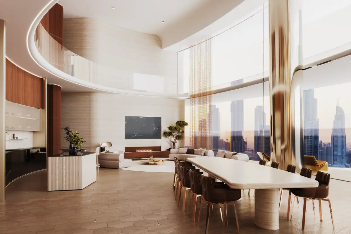 Curated residences and views - Public information indicates around 150 residences, including two‑ to four‑bedroom units and penthouses with uninterrupted views of Burj Khalifa. The tower’s elliptical form and floor plates seek to maximise vistas and privacy. Buyers are expected to be urban professionals and global collectors drawn to design‑led living rather than speculative investors.