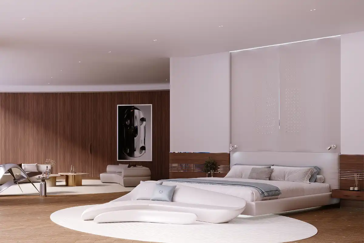 Branded design collaboration - Mercedes‑Benz lends its “Sensual Purity” design language to the project through a licensing agreement; the tower aerodynamic silhouette and elliptical curves pay homage to Mercedes‑Benz automobiles. The partnership emphasises design and brand experience rather than direct development. The collaboration reflects a blend of automotive heritage and architectural innovation.