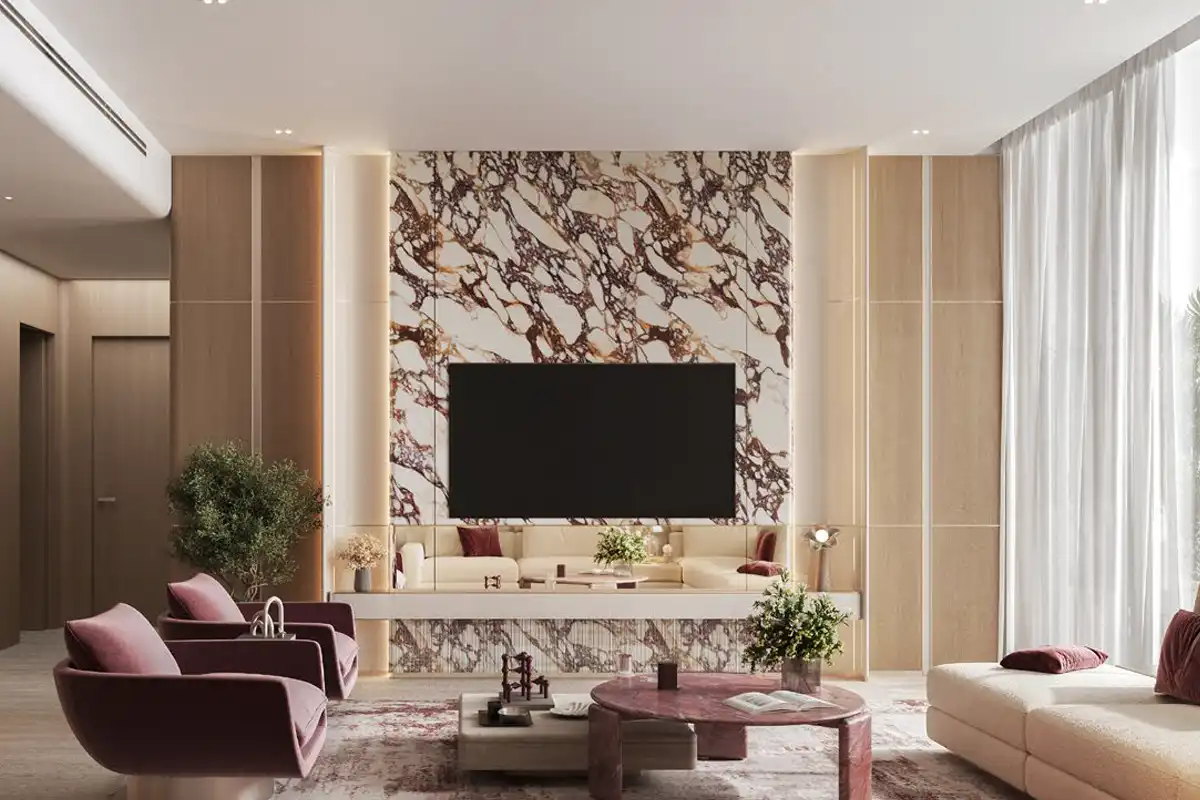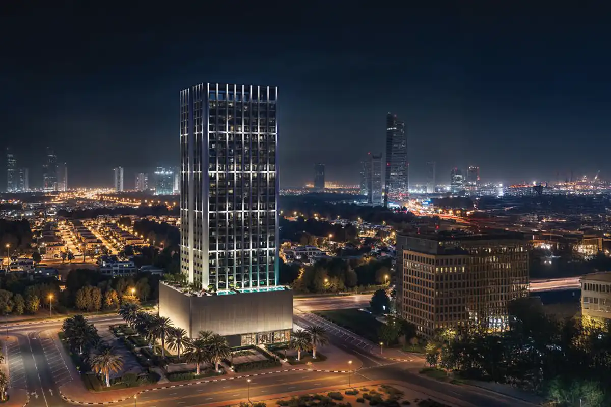 Etherea by Binghatti is a modern residential tower with retail on the ground floor in Jumeirah Village Circle (JVC), Dubai. Developed by Binghatti, the project sits on a 2,321.56 sqm plot and rises B + G + 5 podium levels with 22 residential floors and a mechanical level, delivering a total of 282 units, including 64 studios, 134 oneâbedroom, and 84 twoâbedroom apartments. The architecture showcases a distinct exoskeleton design with satin chrome finishes and openâplan layouts that maximise natural light and unobstructed views, complemented by floorâtoâceiling windows and a refined material palette of travertine stone, oak wood, and bronze details. Residents benefit from a boutiqueâstyle amenity deck featuring adult and children’s swimming pools, jacuzzi, sunbathing areas, yoga and aerobics platforms, walking and bicycle paths, children’s play areas, and water features, creating a balanced lifestyle within the tower.