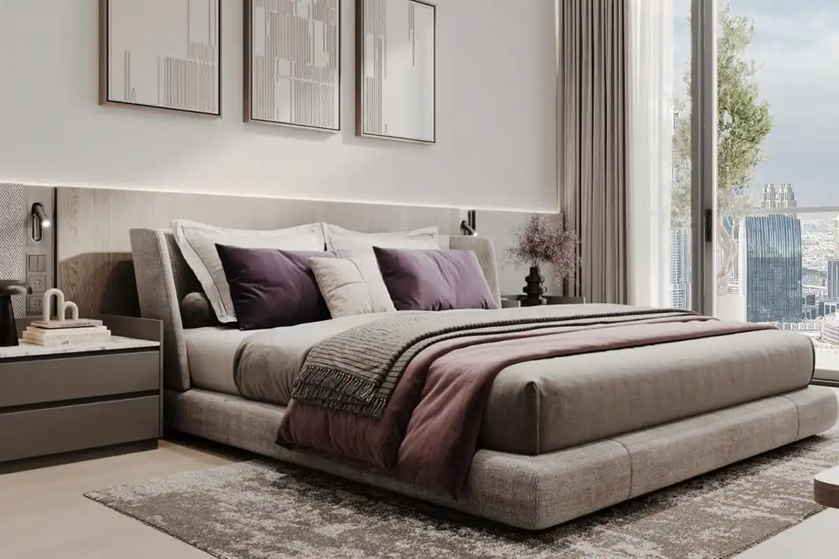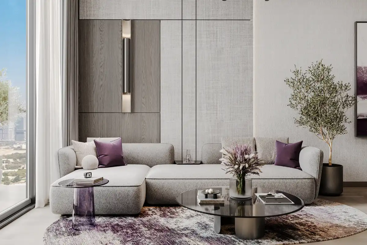 The tower offers a diverse selection of layouts, from compact studios to spacious family-friendly 3-bedroom residences with larger internal areas and dedicated storage spaces. Interiors are finished in a neutral palette, creating a clean and bright atmosphere enhanced by wide floor-to-ceiling glass panels. All apartments come with premium finishing materials, built-in storage, and coordinated furniture packages, reducing the need for additional preparation after handover. This turnkey approach appeals strongly to international buyers and investors seeking a liquid, rent-ready asset.