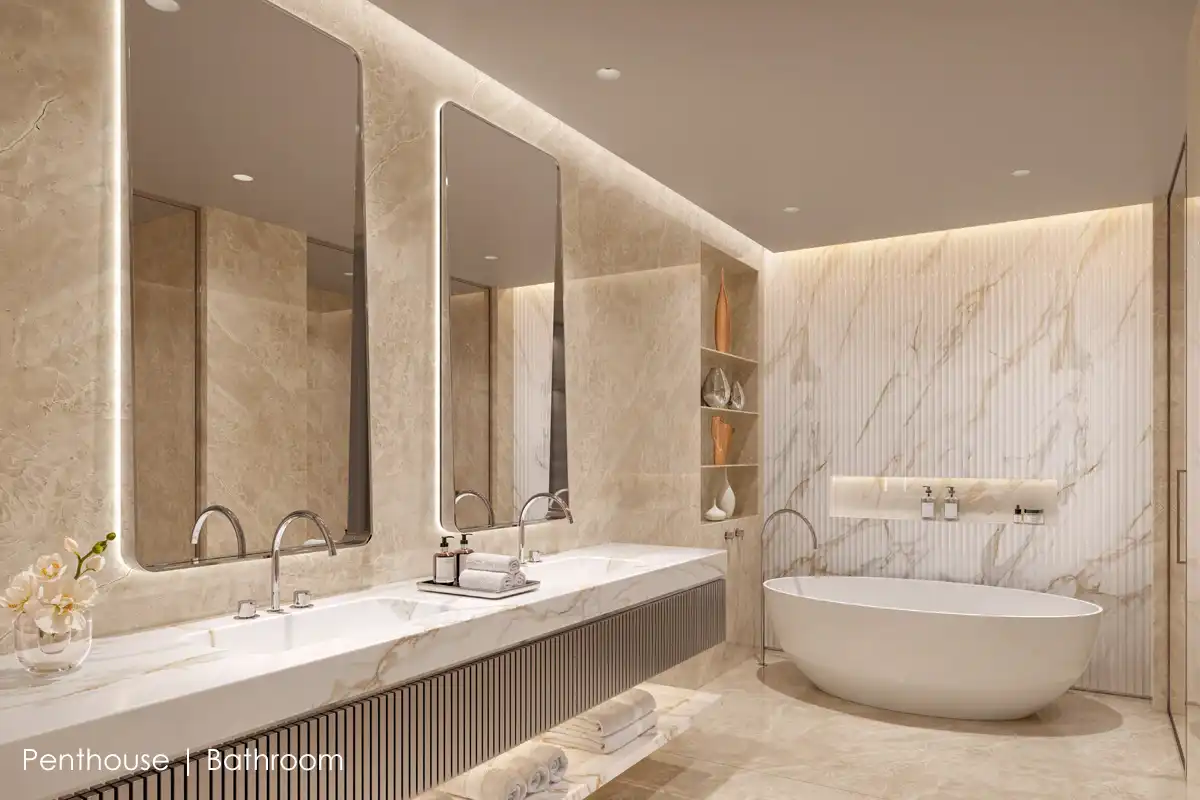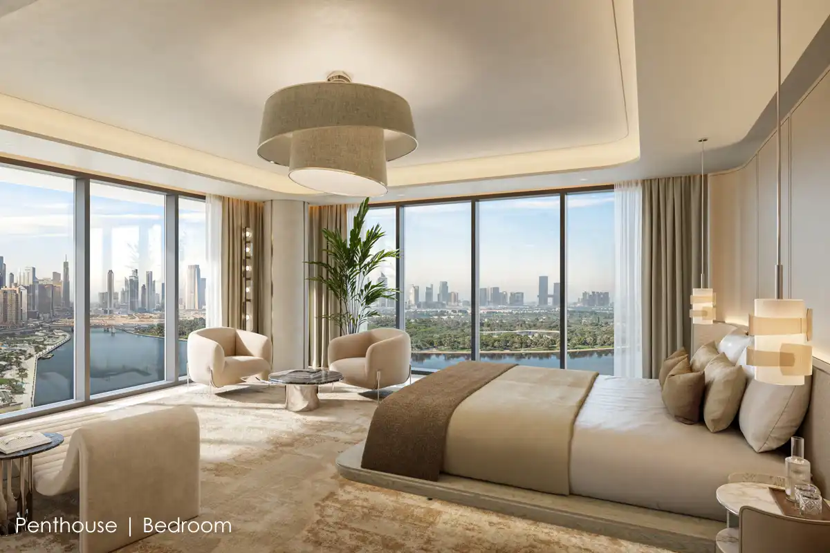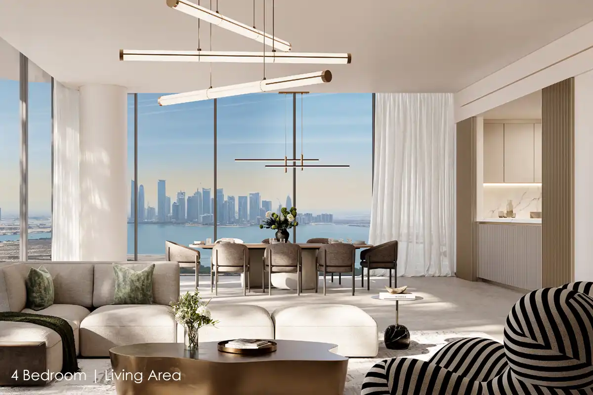 Luxury Living Spaces: One to four-bedroom residences and exclusive penthouses offering panoramic water and skyline views, refined interiors, and floor-to-ceiling windows.
