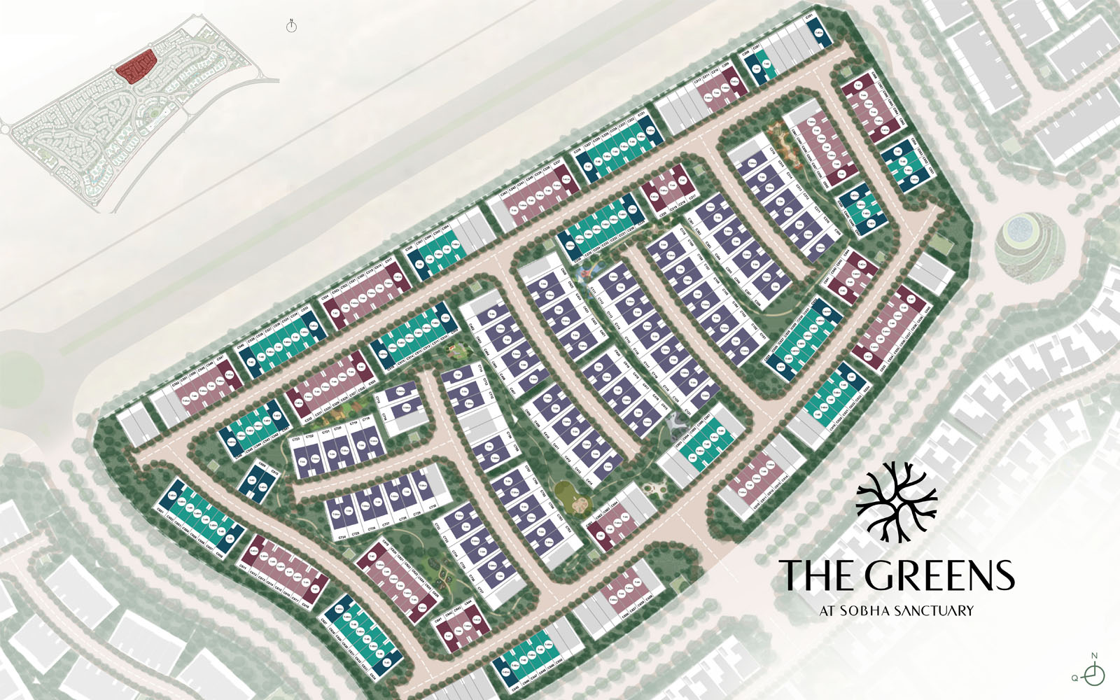 The Greens at Sobha Sanctuary is part of a broader master‑planned development designed to accommodate about 20,000 families. Situated within landscaped corridors in the Dubailand district, the cluster offers a calm, nature‑immersed living environment while maintaining proximity to neighbourhood amenities. Around half of the community is devoted to open spaces, anchored by an approximately 800,000 sq ft central park. Green corridors link forest walks, shaded trails, botanical gardens, and sensory landscapes, creating opportunities for residents to reconnect with nature. Community hubs and shared courtyards encourage social interaction, with event lawns, amphitheatre settings, co‑working spaces, and multi‑purpose halls supporting daily gatherings. A family‑friendly social club and thoughtfully curated children’s play areas, family zones, and youth‑friendly spaces make everyday life convenient and inclusive. Walkable retail and periodic farmers’ markets add a sense of freshness and daily convenience.